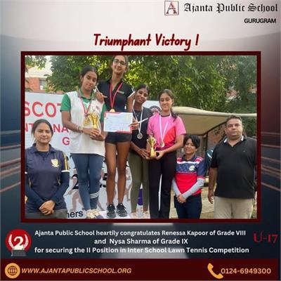 We are delighted to share a proud achievement by our young sportspersons. Renessa Kapoor (Grade VIII) and Nysa Sharma (Grade IX) have brought laurels to Ajanta Public School by securing the Second Position in the Inter-School Lawn Tennis Competition (U-17 Category).