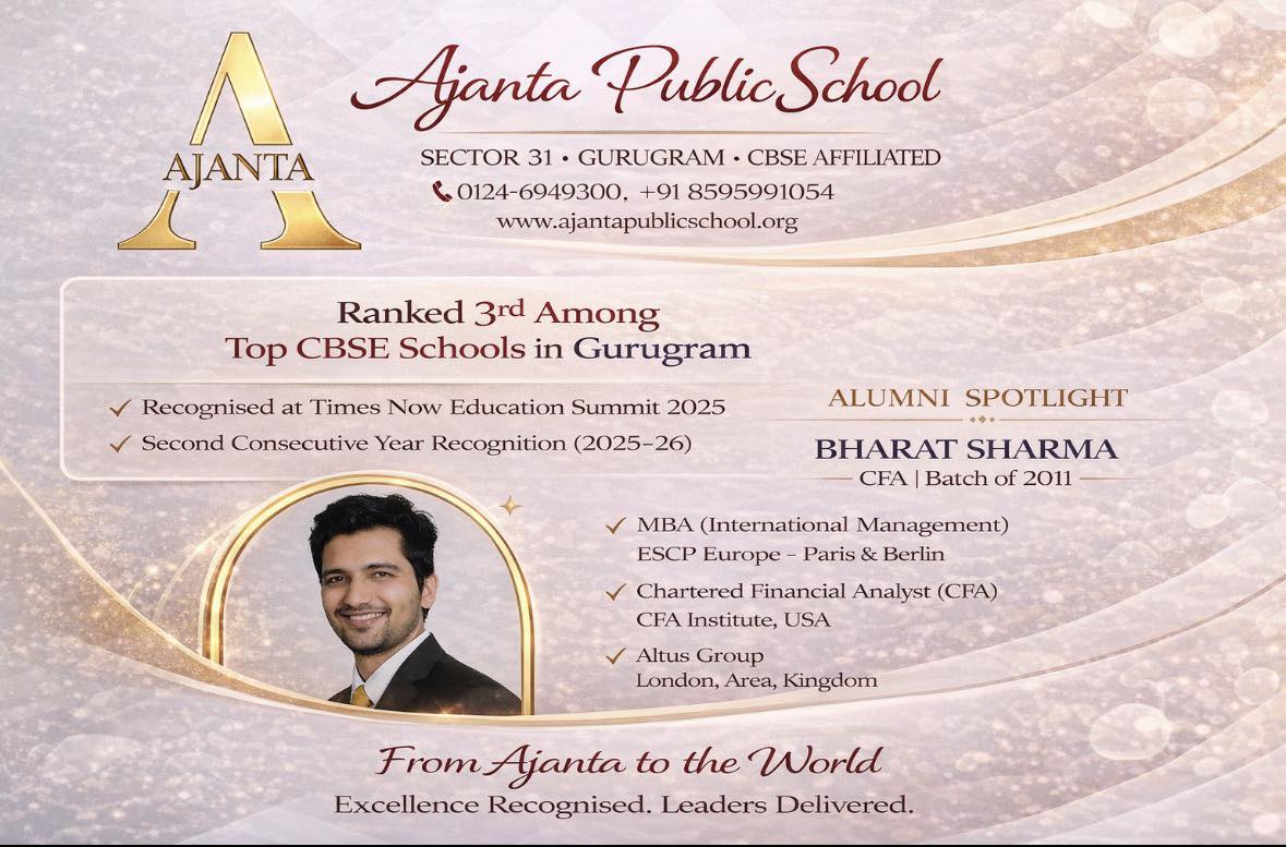 Ajanta Public School, Sector 31 Gurugram, proudly celebrates the global achievements of our distinguished alumnus, Bharat Sharma, CFA, Batch of 2011.